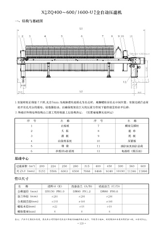 過濾麵積(m²) 200 224 250 280 315 400 450 500 560 600