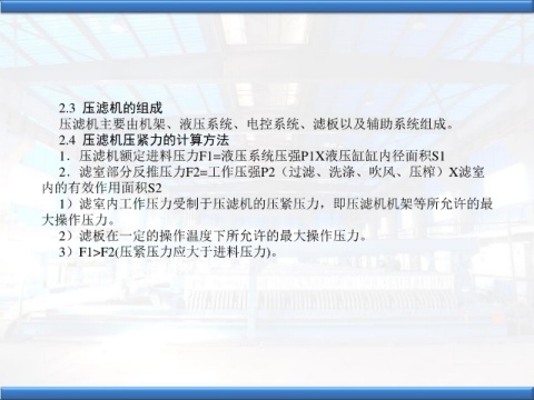 2.濾室部分反推壓力F2=工作壓強P2(過濾、洗滌、吹風、壓榨)X濾室