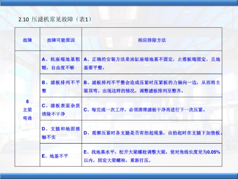 主梁 C、每完成一次工序,必須清理濾板幹淨再進行下一次壓緊。