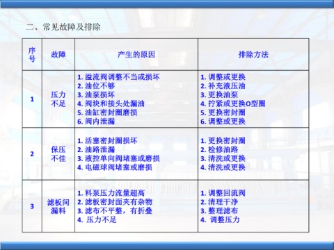 漏料 3. 濾布不平整,有折疊 3. 整理濾布