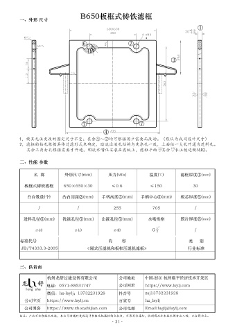 名 稱 外形尺寸(mm) 壓力(MPa) 溫度(℃) 濾框厚度①(mm)