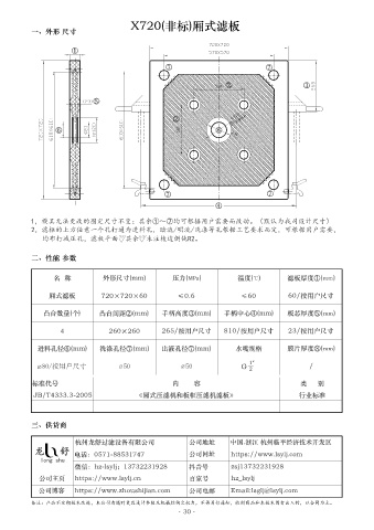 名  稱            外形尺寸(mm)              壓力(MPa)              溫度(℃)          濾板厚度①(mm)