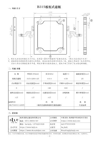 名 稱 外形尺寸(mm) 壓力(MPa) 溫度(℃) 濾板厚度①(mm)